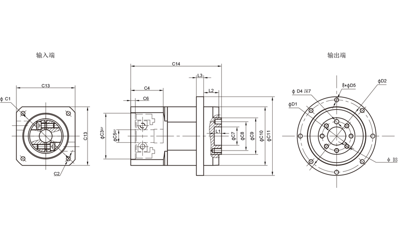 額定輸出力矩Rated output torqueT2N | Nm | 1 | 3 | 42 | 142 | 284 | 568 | 1136 |