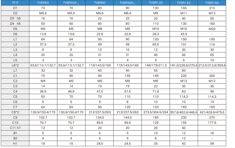 TVBR系列性能參數(shù)表 / TVBR Series Performance Table | ||||||||