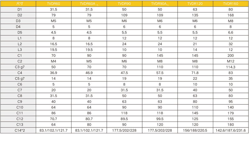 TVDR列性能參數(shù)表 / TVDR Series Performance Table | |||||||