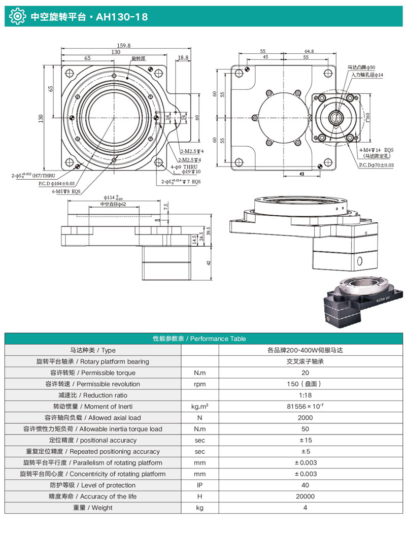 無齒隙,定位精度≤15sec,重復(fù)定位精度可達±5sec