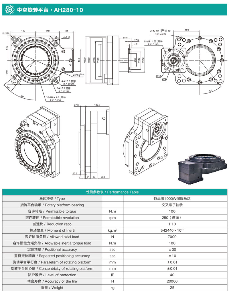 無齒隙,定位精度≤15sec,重復(fù)定位精度可達(dá)±5sec